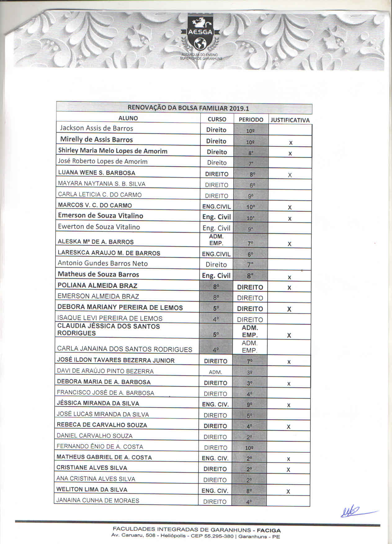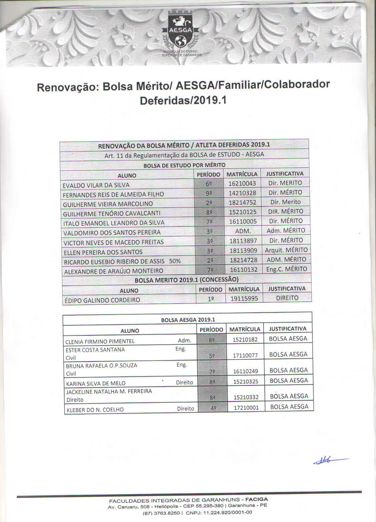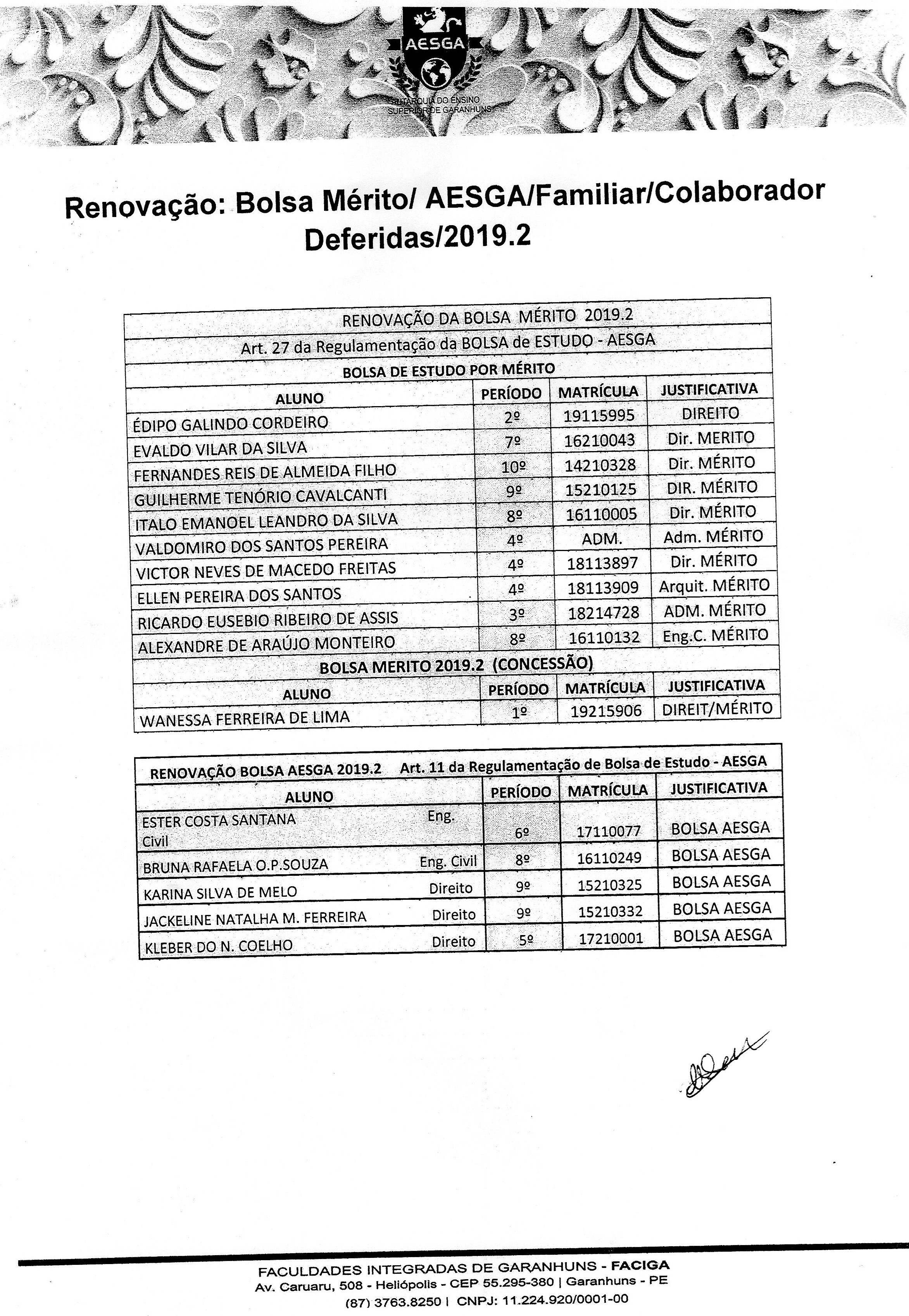RESULTADO RENOVAÇÃO DE BOLSAS 2019.2 - 1