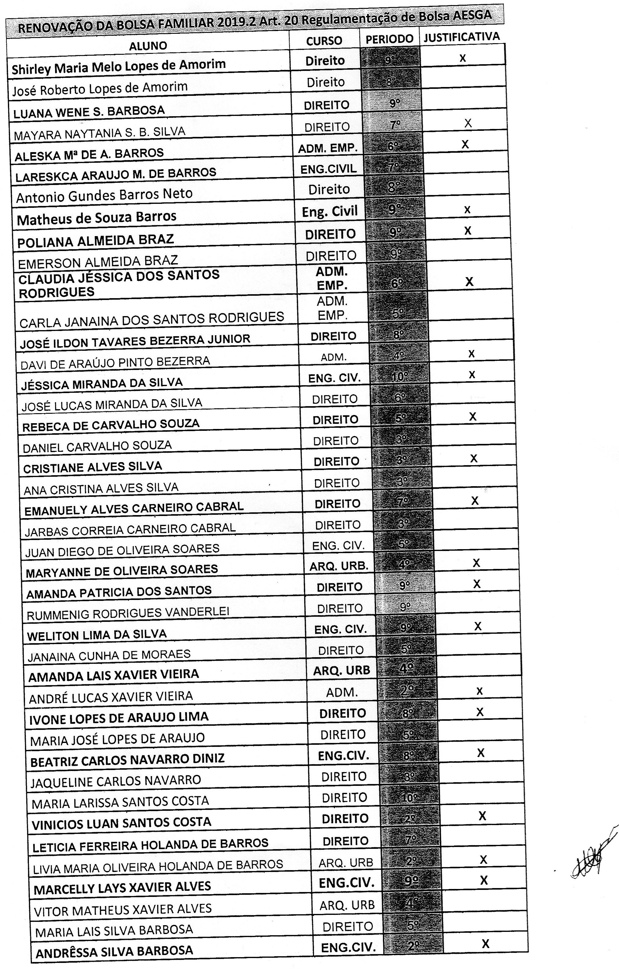 EDITAL DE RENOVAÇÃO DE BOLSA DE ESTUDO AESGA 2021.2